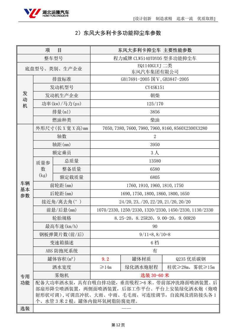 東風大多利卡抑塵車(8噸方罐-30-60米-CLW5140TDYD5)