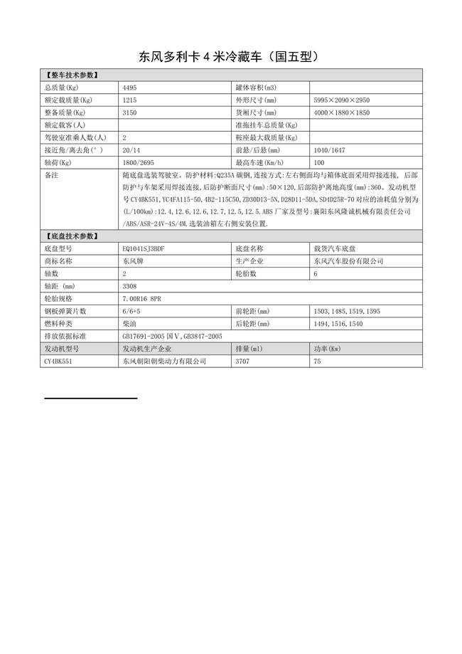 東風(fēng)多利卡4米冷藏車(國(guó)五型)