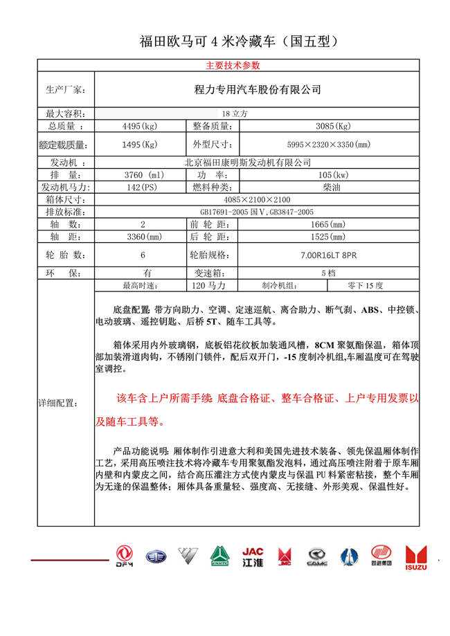 福田歐馬可4米冷藏車