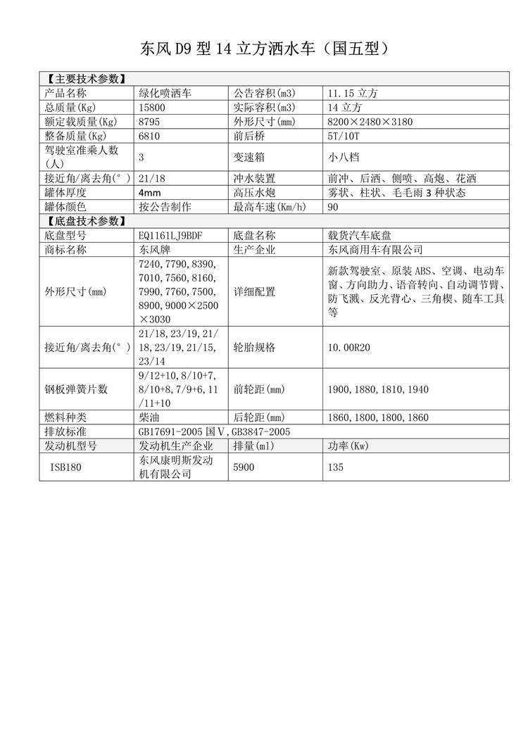 東風D9型14噸灑水車
