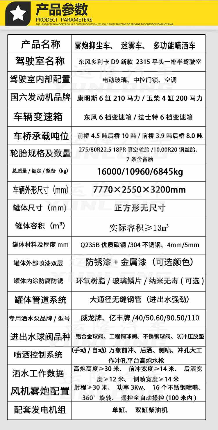 國六東風專底13.3立方灑水車
